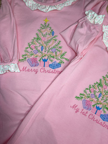 My 1st Christmas and Merry Christmas Long Romper, Pink, Everyday Knit