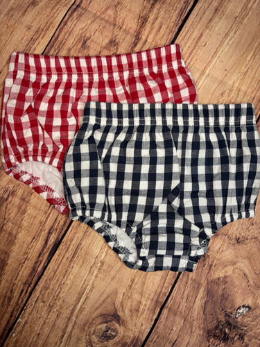 Patriotic Summer Gingham Diaper Cover Set, Red and Navy Blue