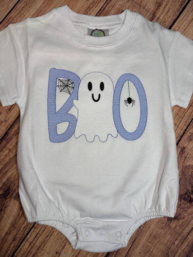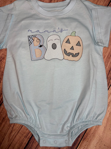 • Ghost w/Jack-o-lantern Blue Short Sleeve Bubble Romper