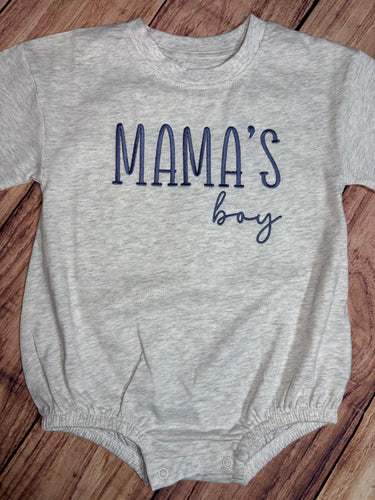 • Grey Oversized "Mama's Boy" Dual Script Bubble Romper