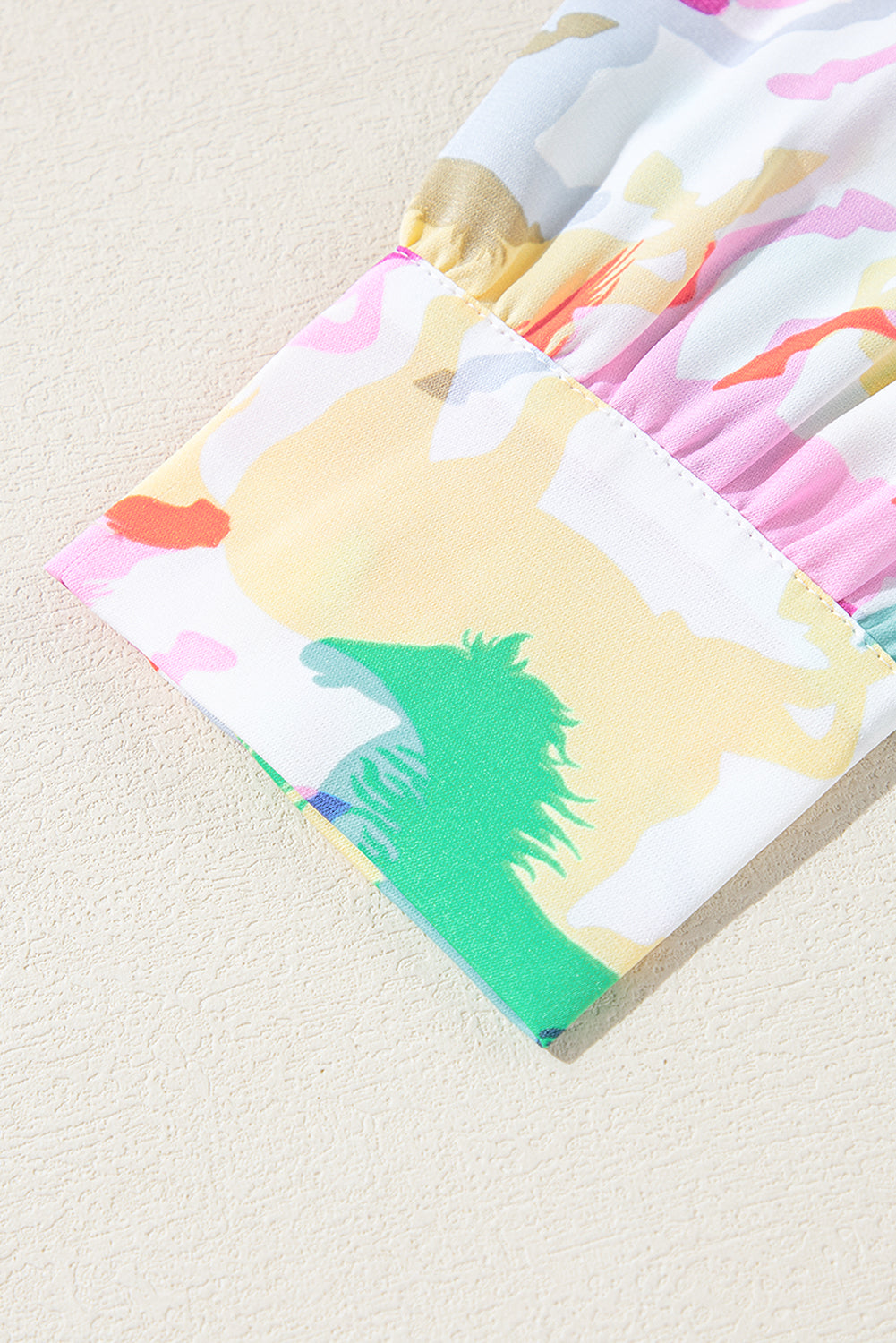 • Load image into Gallery viewer, White Colorful Horse Print Long Sleeve Shirt
