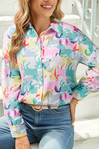 Blackish Green Leopard Print Puff Long Sleeve Top